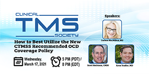 The webinar will review the key elements contained in the recommended coverage policy for Transcranial Magnetic Stimulation for the treatment of patients with treatment-resistant obsessive-compulsive disorder. Indication for coverage, patient selection criteria including limitations, and utilization guidelines and recommended TMS protocol will also be reviewed. At the end of the webinar, providers will have a better understanding of how to utilize the coverage policy to advocate for their OCD patients.