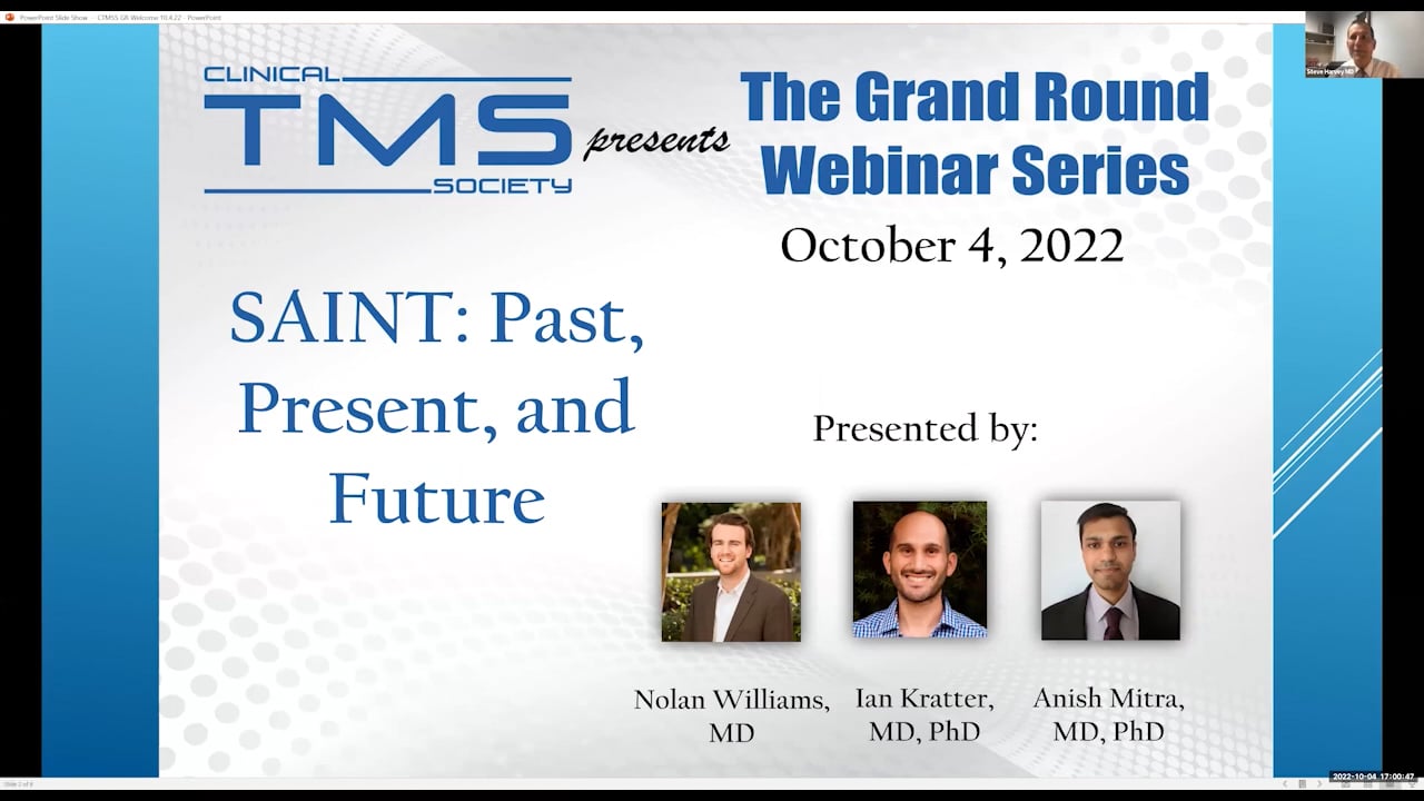 At the conclusion of this Grand Rounds webinar, the Community Education Slide Deck will be made available to Clinical TMS Society members for educational purposes by completing the Member User Agreement. See your confirmation email for details.